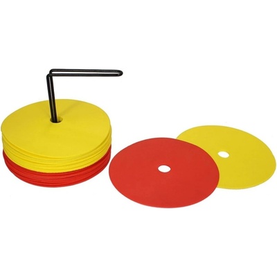 Sada - 24 ks plochých vyznačovacích met se stojánkem. 4 barvy po 6 ks nebo 2 barvy po 12 ks materiál - guma průměr - 15 cm