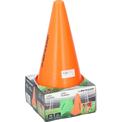 DUNLOP 10 tréninkových kuželů 23,5x14x14 cm Sada 10 kusů, různobarevných tréninkových kuželů, nazývaných také tréninkové značky. Sada je umístěna v jednoduché, BAREVNÉ...