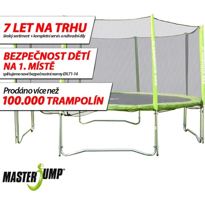 Speciální výhodný set trampolína MASTERJUMP 396 cm s ochrannou sítí. Nový model trampolíny MASTERJUMP se zdokonaleným uchycením ochranného límce s protahovacím okem abychom...