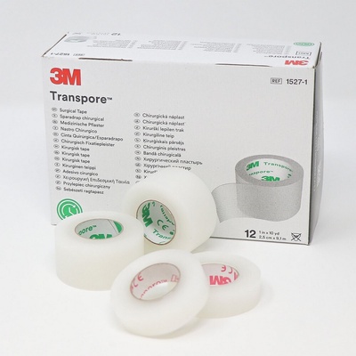 Transparentní páska 3M Transpore je perforovaná plastová páska pro lehké odtržení a úpravu délky nezávisle na místě aplikace. Náplast vyniká středně silnou přilnavostí a spolehlivou adhezí.