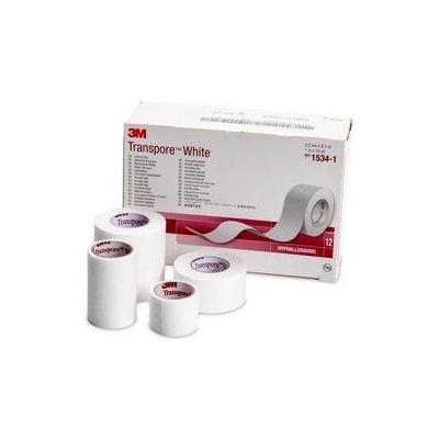 \n \n \n3M Transpore white fixační náplast z porézní netkané textilie 2,5 cm x 9,15 m, 12 ks \nMikroporézní papírová páska se silným adhezivem a obousměrnou perforací pro snadné odtrhávání a dělení. \n \nChirurgická páska Transpore white je ve dvou směrech perforovaná...