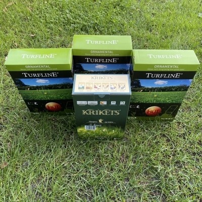 Set 3x travní směsi DLF Turfline Ornamental Park 1kg a 1x startovacího hnojiva KRIKETS® 2kg představuje ideální balení pro založení okrasného parkového trávníku na ploše 100m2.