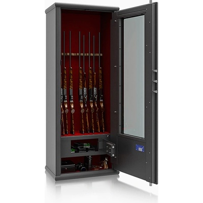 Elektronický zámek se 2 klíči Prostor pro 5 až 8 dlouhých zbraní (max. 1255 mm) Přizpůsobitelný úložný prostor Kvalitní povrchová úprava Jednoplášťová skříň Vnitřní schránka s...