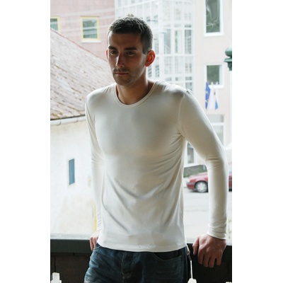 Pánské tričko z bambusového vlákna - elastické - dlouhý rukáv -kulatý výstřih - příjemný a anti-alergický materiál - EKO prádlo- v barvě přírodní neobsahuje žádná barviva...