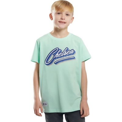 Dětské tričko Chelsea FC v mátově zelené barvě s krátkým rukávem a kulatým výstřihem. Na hrudi je výrazný nápis Chelsea v modré barvě. Zadní strana je hladká bez potisku....