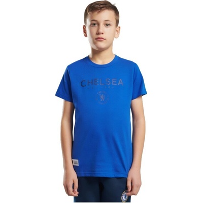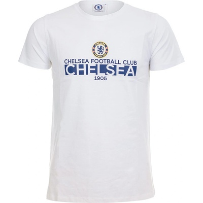 Dětské tričko Chelsea FC v bílé barvě. Uprostřed hrudi modrý nápis Chelsea Footbal Club, Chelsea a barevný znak klubu společně s datem založení. Má klasický střih a krátké...