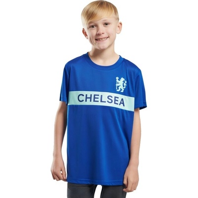 Dětské tričko Chelsea FC pro malé fanoušky v královské modré se světlým pruhem přes hruď. Krátký rukáv a kulatý výstřih. Na pruhu je nápis CHELSEA, na levé straně hrudi motiv...