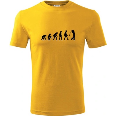 Žluté tričko evoluce golf. nabízené velikosti jsou S,M,L,XL,XXL,XXXL. Výběr z 12ti barev. Tričko patří do kategorií Dárek pro golfistu, Trička evoluce pánská, . Technologie...