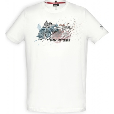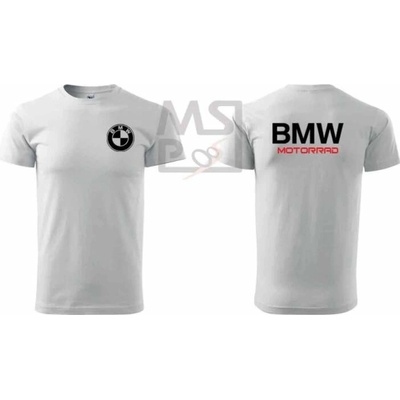 Pánské žerzejové triko rovného střihu s kulatým výstřihem. Nápis "BMW Motorrad" na hrudi. Logo BMW na levém rukávu vyobrazeno na malé nášivce. Logo BMW vzadu za krkem....