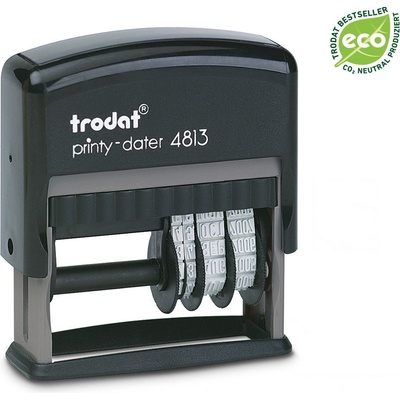 Kompletní razítko TRODAT 4813num. Rozměr textové plochy: 25 x 8 mm, datum výšky 3,8 mm.