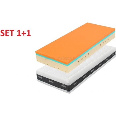 Set dvoutuhostních matrací s ramenní kolébkou, paměťovou pěnou a pružnou antidekubitní stranou. Použity jsou pružná a odolná PUR Flexifoam® pěna, paměťová a studená pěna....