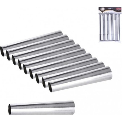 Rozměry: Průměr 2,4 cm/pr. 2 cm, délka 13,5 cmMateriál: Pocínovaný plechBalení obsahuje 10 ks