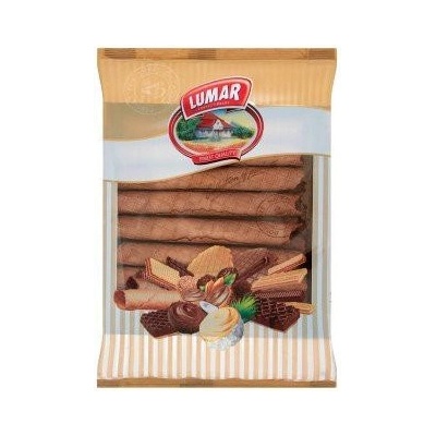 Vaflové trubičky s krémem s kakovou a smetanovou chutí. SLOŽENÍ: - Těsto: PŠENIČNÁ mouka, voda, cukr, odtučněné sušené mléko, glukóza, maltodextrin, řepkový olej, barvivo:...