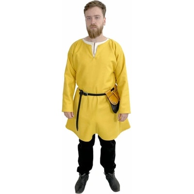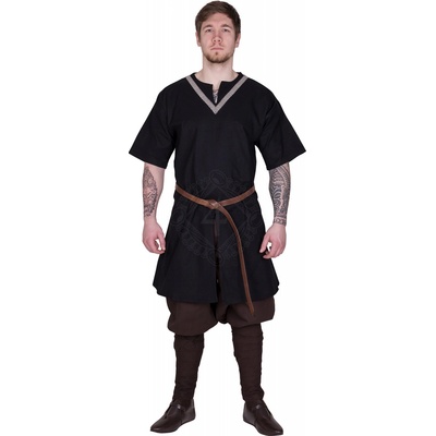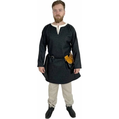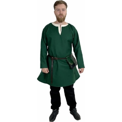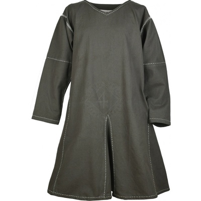 Středověká tunika s dlouhým rukávem Kragelund, tmavě olivově zelená Tato bavlněná tunika v délce po kolena je vyrobena z plátěné tkaniny (canvas) a zdobená ručně šitými...