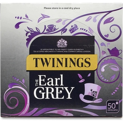 Twinings Earl Grey - Černý čaj z Číny s nejjemnějším aroma bergamotu. Tento osvěžující čaj se pije černý nebo s trochou mléka. Doporučujeme přidat plátek citronu. Složení: černý čaj, bergamotová příchuť 3 % Balení: 100 sáčků v přebalech