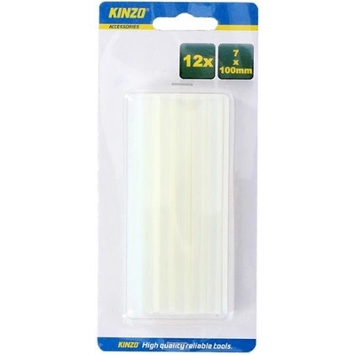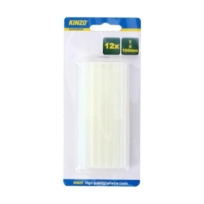 Náplň do lepící pistole - čirá (7x100mm) KINZO 12ks\n \n Sada 12 kusů čirých náplní do lepící pistole- barva: čirá- průměr: cca 7 mm- délka: 100 mm- počet kusů v balení: 12