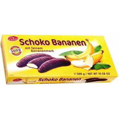 Banánové želé s malinovou příchutí (17 %) a čokoládovou polevou (25 %). Složení: Cukr, glukózový sirup, voda, kakaová hmota, banánová dřeň 5 %, malinová dřeň 4 %, kakaové máslo,...