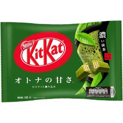 Oblíbená tyčinka Kit Kat s příchutí zeleného čaje matcha. Balení obsahuje 10 ks mini tyčinek. Složení: čokoláda (cukr, laktóza, palmový olej, sušené plnotučné mléko, kakaové...