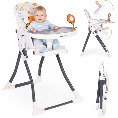 KRMÍCÍ ŽIDLE OD ECOTOYS Pro děti 6 až 36 měsíců Stabilní, ocelová konstrukce Odnímatelný elastanový potah Nastavitelný podnos a opěrka nohou 3bodové bezpečnostní pásy...