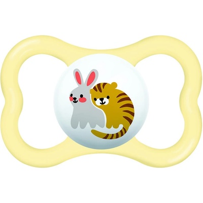 Extra velké vzduchové otvory dudlíku MAM Air umožňují, aby se k obličeji dítěte dostalo více vzduchu. Je tedy obzvláště šetrný k pokožce. - Extra proudění vzduchu – zvláště...
