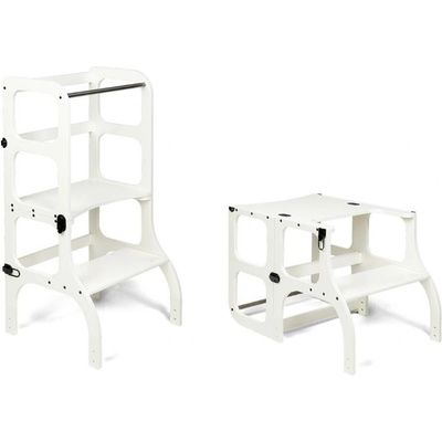 Patentovaná Montessori učící věž STEP’n’SIT® v bílé barvě – z kuchyně na hraní za pár sekund. Stabilní, elegantní, vhodné od 18 měsíců | EuropeElite.eu