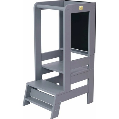 Patentovaná Montessori učící věž STEP’n’SIT® v šedé barvě – z kuchyně na hraní za pár sekund. Stabilní, elegantní, vhodné od 18 měsíců | EuropeElite.eu
