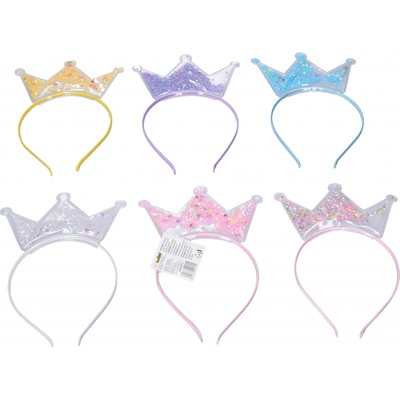 Vlasový doplněk - čelenka s ozdobou korunka. 6 barev: mix, žlutá, bílá, modrá, fialová, růžová Materiál: plast Rozměry: 12 x 22 cm