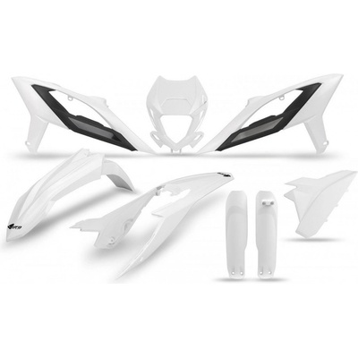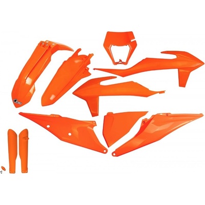 KompatibilitaDíl UFO kompletní sada plastů (FULL KIT) s kryty tlumičů KTM EXC 125 20-21, EXC 250 / 300 TPI 20-23, EXC-F 250 / 350 / 450 / 500 20-23 barva oranžová černá je...