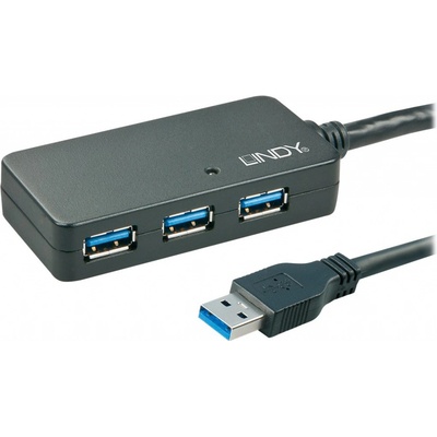 Lindy Active Extension Pro Hub Usb 3.0 kabel 10m černý
