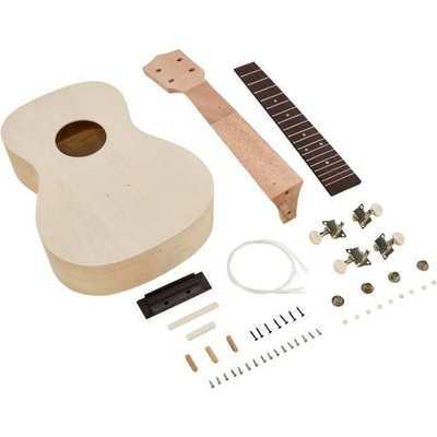 ukulele kit "udělej si sám" Velikost Soprano Tělo: lípa Krk: lípa Hmatník: palisandr 12 pražců Měřítko: 350 mm šířka matice: 35 mm Celková délka: 53,5 cm Nylonové struny Barva:...
