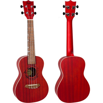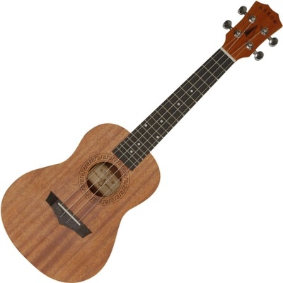 Koncertní ukulele. Vrchní deska, spodní deska a luby sapele (druh exot. dřeviny), krk mahagon, hmatník a kobylka kompozitní ořech, otevřená ladicí mechanika s černými knoflíky....