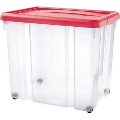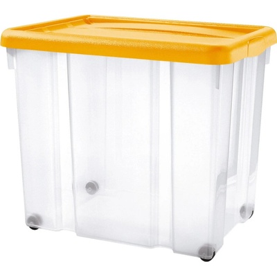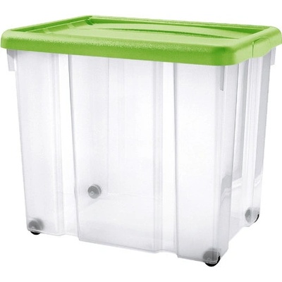 Velký víceúčelový box s barevným, zaklapávacím víkem a kolečky pro snazší přesun. 60.5X40XH50CM