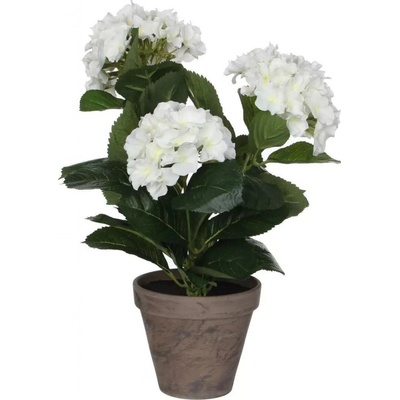 Umělá květina bílá hortenzie potěší milovníky trvalé krásy i snadné údržby. Tato dekorace je vyrobena z kvalitního plastového materiálu s realistickými detaily. Výška 44 cm...