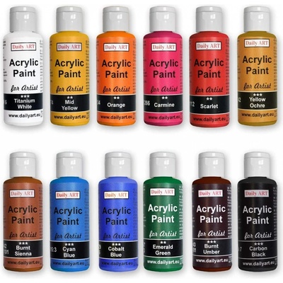Akrylové studiové barvy v sadě. Balení obsahuje 12 odstínů akrylových barev po 50 ml. Díky svému všestrannému použití s vynikající přilnavostí jsou vhodné pro malování na různé...