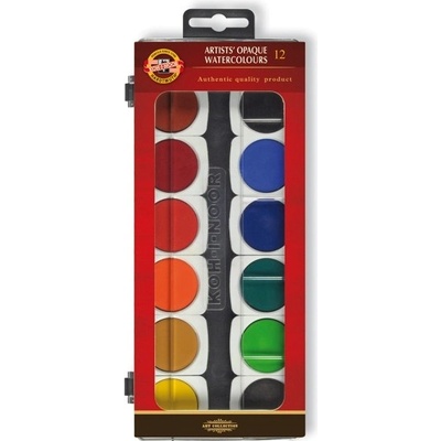 - vodové umělecké barvy KOH-I-NOOR - krycí a světlo stálé - 12 základních vodových barev + 1 běloba v tubě 7,5 ml - barvy mají průměr 30 mm a jsou ve vyměnitelných miskách...