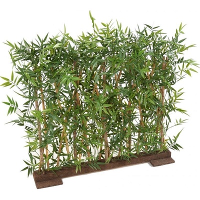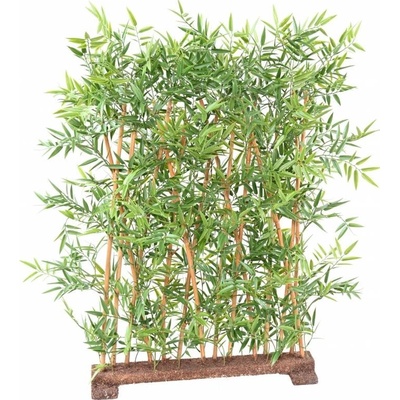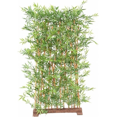 Umělý živý plot v podobě stojanu s přírodními kmeny bambusu a listy z PE. Výška 90cm, délka 120cm, šířka 45cm. Plot má celkem 14 kmenů bambusu které jsou zapuštěny na základně o...