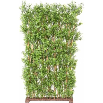 Umělý živý plot v podobě stojanu s umělými listy vavřínu pro venkovní použití. Výška 105cm, délka 110cm, šířka 40cm. Lze umístít i do exteriérů. Hmotnost 16,7kg.
