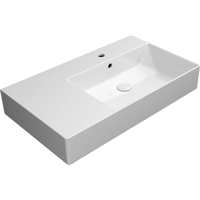 Sapho KUBE X keramické umyvadlo 80x47cm, s odkládací plochou vlevo, rektifikovaná verze, bílá ExtraGlaze 94579111.