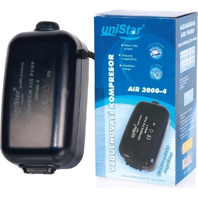 Vzduchovací kompresor Air 2000-4 - určený pro akvária o velikosti 50 - 400 l - velmi tichý, s nízkou vibrací díky silnostěnnému plastovému pouzdru - určený akvaristům, kteří potřebují provzdušnit několik menších nádrží - výhoda systému se dvěma vývody je možnost z...