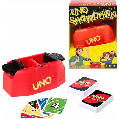 UNO Showdown - oblíbená karetní hra v rychlejší variantě s podavačem na střílení karet. Buďte rychlejší a zatlačte po odeznění signálu páčku jako první a vypusťte karty na své...