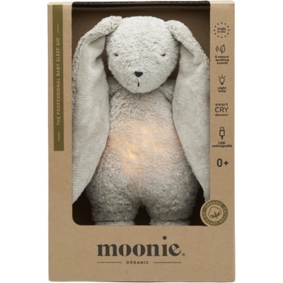 MOONIE usínáček zajíček vhodné od narození Moonie usínáček v podobě roztomilého zajíčka s nočním světlem a relaxačními zvuky pomáhá miminku uklidnit se a snáze usnout....
