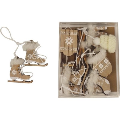 Sada vánočních dekorací k zavěšení. Sada obsahuje 6 dekorací. Rozměry : 2,5 - 6 x 0,5 x 2 - 6 cm. Rozměry: 6 x 0,5 x 6 cm. Materiál: dřevo. Barva: hnědá. Tento výrobek není...