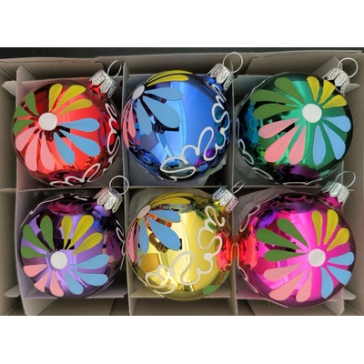 Skleněné vánoční ozdoby, koule, hladká, lesk, barevný retro dekor Barva: barevné Kusů v balení : 6 koulí, velikost 5 cm Česká výroba Cena za 6 kusů!