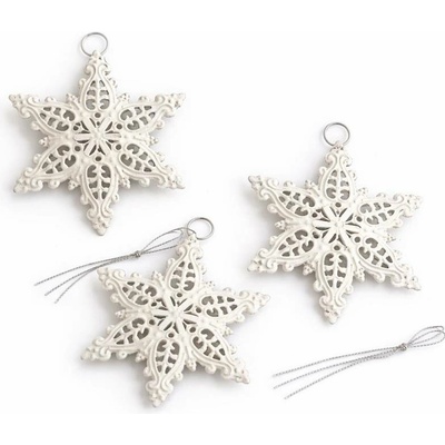 DECOLED Vánoční ozdoby na stromeček kovové vločky 10 × 7,7 cm, bílá, balení 3 ks