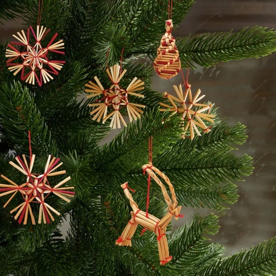 Tradiční slaměné vánoční ozdoby jsou opět trendy. Vánočnímu stromečku dodají jemný rustikální vzhled. Balení obsahuje rozmanité tvary ozdob, 4 panenky v červeno bílé čepičce a...