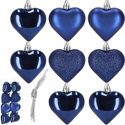 Sada 8 ks modrých ozdob na stromeček s motivem srdce. Výška ozdoby 7 cm, se třemi vzory, poutko na zavěšení, nerozbitný plastový materiál. Ideální k výzdobě stromečku nebo jako...