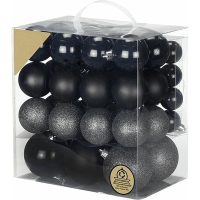 Klíčové vlastnosti produktu LAALU Vánoční ozdoby - koule, černé, mix 4-8 cm, 54 ks Vánoční ozdoby LAALU jsou vyrobeny z odolného plastu Zhotovení v černé barvě s matným, lesklým...