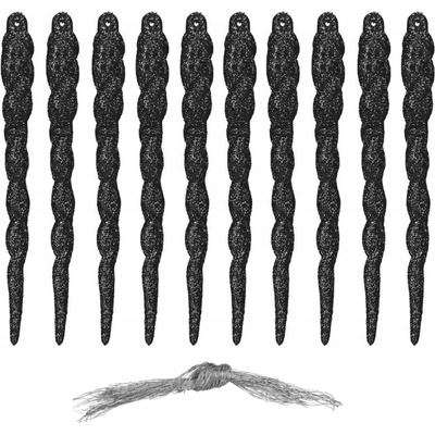 Sada 10ks černých rampouchů s provázkem na zavěšení. Výška 12,5 cm, nerozbitný, odolný materiál, třpytivý vzhled. Krásné budou jako ozdoba na vánoční stromeček nebo jako vánoční...