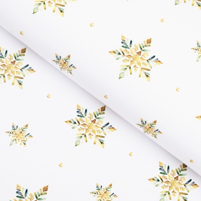 Polyesterová látka s vodoodpudivou a nešpinivou teflonovou úpravou, se vzorem zlato-modro-zelených vánočních vloček na bílém podkladu. Je stálobarevná, nesráží se a velmi snadno...