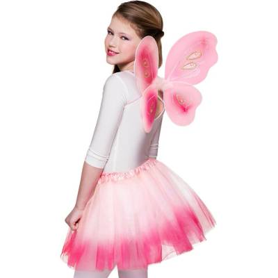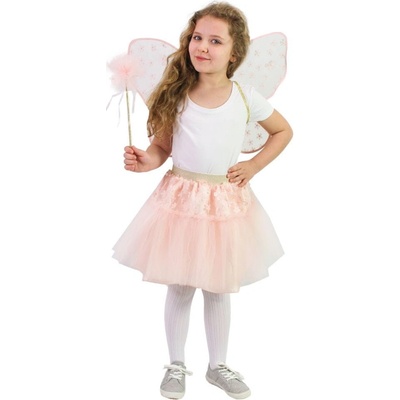 Sada růžová víla Sada se skláda: z čelenky, křídel (38 x 33 cm) a sukně tutu (obvod pasu 44-64 cm) Materiál: 98% polyester, 1% iron, 1% peří Velikost: dětská